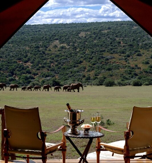 Das erstklassige Gorah Elephant Camp, welches zu den renommierten Hunter Hotels gehört, liegt im Herzen des malariafreien Addo Elephant Nationalparks, der das dichteste Elefantenaufkommen weltweit aufweist. Das Camp wurde 1931 zum Schutz der Kap-Elefanten errichtet. Das Gorah House besticht durch den kolonialen Glanz des 19. Jahrhunderts, die Liebe zum Detail bei der Einrichtung und den aufmerksamen Service. Die Mahlzeiten werden entweder im eleganten Speisezimmer, bei Kerzenlicht auf der einladenden Veranda mit Blick auf die hoch frequentierte Wasserstelle oder in der traditionellen Boma serviert. Mit etwas Glück schlummert ein Löwe wenige Meter von Ihrem Zelt im Gras oder eine Elefantenherde durchstreift das Camp. Entspannte Momente mit einem atemberaubenden Blick auf die Weite des Busches bietet die großzügige Lounge. Für Erfrischung sorgt der Felsenpool. Bei einem kühlen Drink in der Bar lassen Sie Ihren ereignisreichen Tag Revue passieren.
