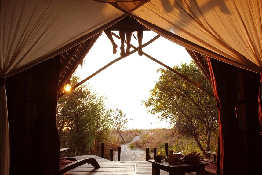 Das Camp hat nur sechs aus Holz und Reet gebaute Bandas, jeweils mit privatem Bad, das über einen kleinen Holzpfad zu erreichen ist sowie einer kleinen Terrasse im oberen Stockwerk. Von den Zimmern aus hat man ebenfalls einen hervorragenden Blick auf den Strand und den See. Das Gefühl, allein inmitten der Natur zu sein, ist einzigartig und verspricht authentisches Afrika-Feeling.
