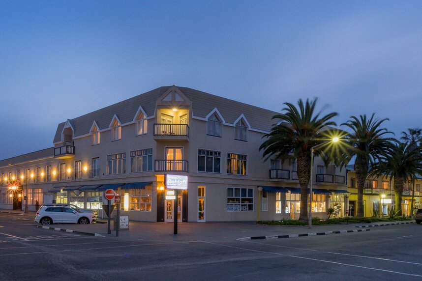 Das Hotel liegt im Zentrum der Stadt Swakopmund nur wenige Gehminuten von den Geschäften, Cafés und Restaurants entfernt. Das klassische Gebäude aus dem Jahre 1905 gehört zum architektonischen Erbe Swakopmunds. Die Stadt ist wie ein kleines Stück Deutschland am Rande der Namib.