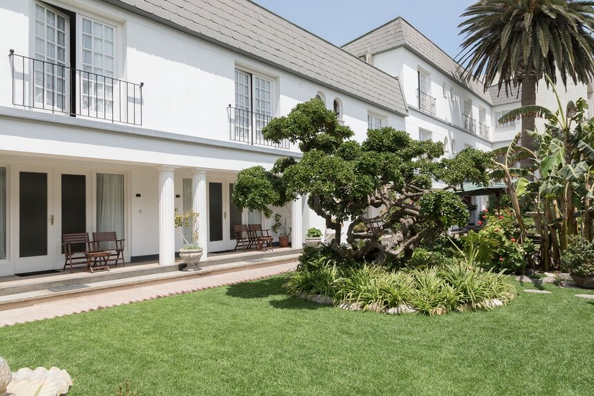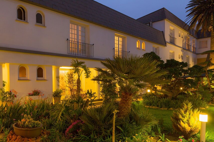 Deutsche Küche und wilhelminische Bauten treffen auf weißen Sandstrand. Kulinarisch überzeugt das Haus in zwei Restaurants: Das "Terrace", mit Blick auf den Innenhof, serviert das Mittagessen und der "Equestrian Room" offeriert am Abend ein à la carte Angebot an internationaler und lokaler Küche, die zu den besten in Swakopmund gehört. Leckere Cocktails werden in zwei Bars gereicht. Das Hotel hat 58 Zimmer, die mit Bad oder Dusche/ WC, Telefon, TV, Safe, Minibar, Kaffee-/Teezubereiter ausgestattet sind. Das Hotel kann im Rahmen einer Mietwagenrundreise oder einer Flugsafari gebucht werden.