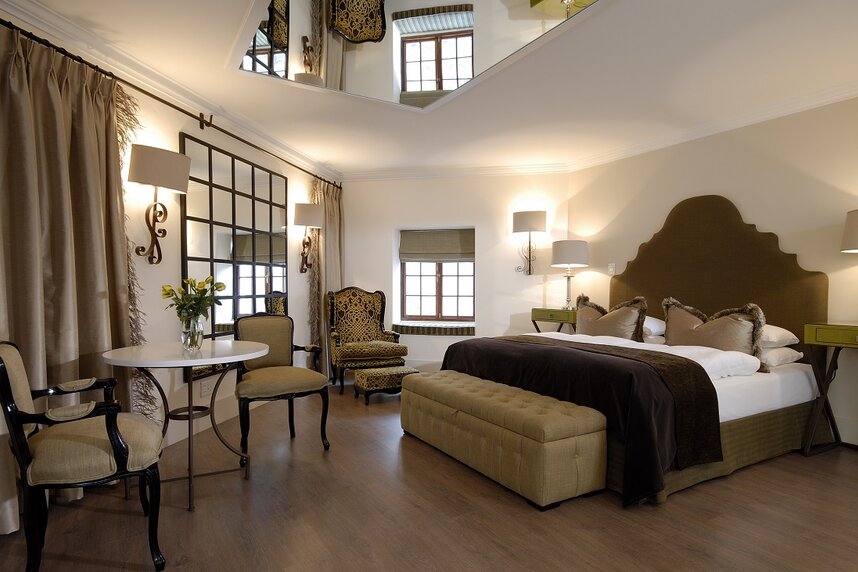 Das charmante, deutsch geführte Haus befindet sich in einer über 100 Jahre alten Burg und erstrahlt in einem wunderbar romantischen Charme. Der idyllische Hotelgarten mit beheizbarem Pool lädt zum Entspannen ein. Kulinarisch verwöhnen Sie drei exzellente Restaurants, unter anderem das Gourmet-Restaurant "Leo‘s at the Castle". Der in die Felsen gebaute Weinkeller ist der größte private Weinkeller Namibias.