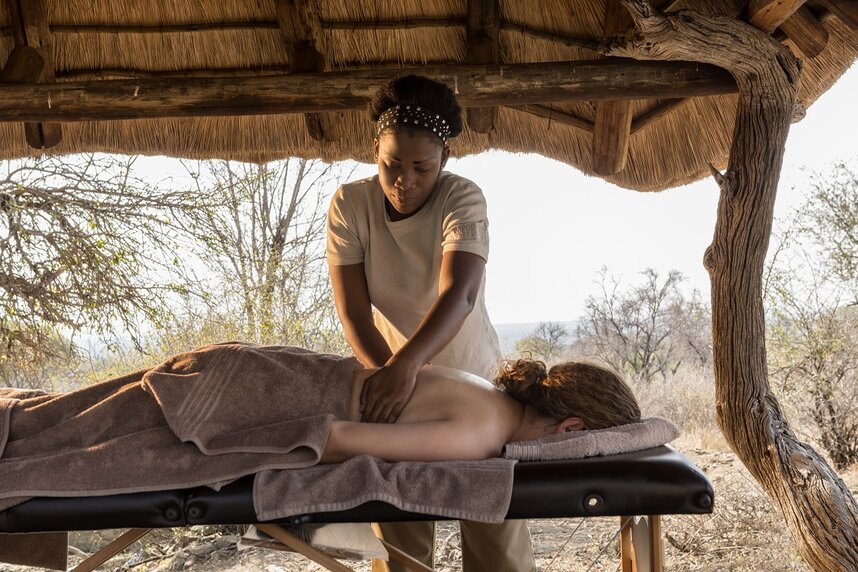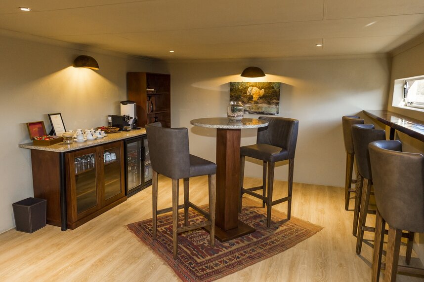 Jede der acht Luxury Suiten ist geräumig gestaltet und verfügt über einen Kamin, eine Klimaanlage, sowie ein Bad mit Außendusche. Die private Terrasse bietet einen uneingeschränkten Blick in die Wildnis. Jede Suite wurde sorgfältig positioniert, um absolute Privatsphäre zu gewährleisten.