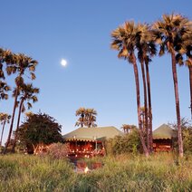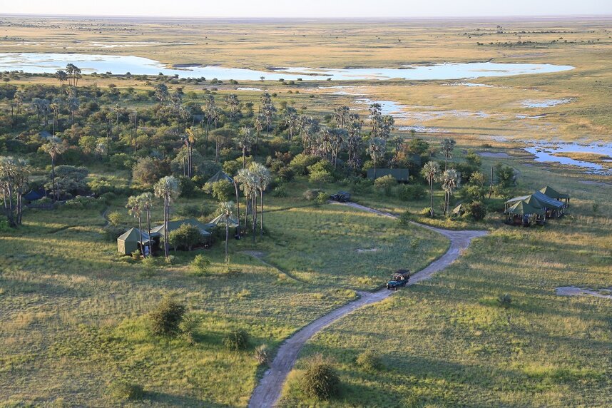 Per Sportflugzeug zum Tsigaro-Airstrip (1 Std. 10 Min von Maun, 2 Std. von Kasane). Von hier Fahrzeugtransfer in ca. 30 Minuten zum Camp.