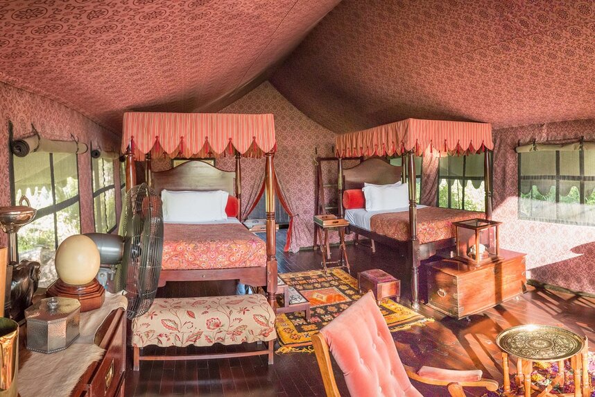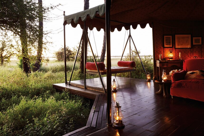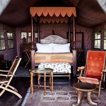 Eine der größten Salzpfannen der Erde und die harsche Welt der Kalahari sind Heimat des legendären Jacks Camps. Es liegt inmitten der Makgadikgadi Salzpfannen, nicht weit entfernt vom Schwesterncamp "San Camp". Jacks Camp und seine zehn Zelte sind mit Antiquitäten, Orientteppichen und vielen naturhistorischen Museumsexponaten, für die das Jacks Camp in Insiderkreisen bekannt ist, ausgestattet. Vom Camp aus haben Sie immer einen Blick in die Weite der afrikanischen Wildnis. Es gibt hier keine Elektrizität, doch schaffen antike Öllampen eine besondere Stimmung. Neben klassischen Safari-Aktivitäten wie Pirschfahrten und Buschwanderungen bietet die Unterkunft Quadfahrten durch die offenen Grasflächen und den Busch Botswanas an. Einmalig ist auch die Erdmännchenkolonie in der Nähe, deren Bewohner im Rahmen eines Forschungsprojektes an Menschen gewöhnt wurden und somit großartige Fotomotive garantieren. Nach einem spannenden Safaritag können Sie gemütlich am überdachten Pool entspannen.
