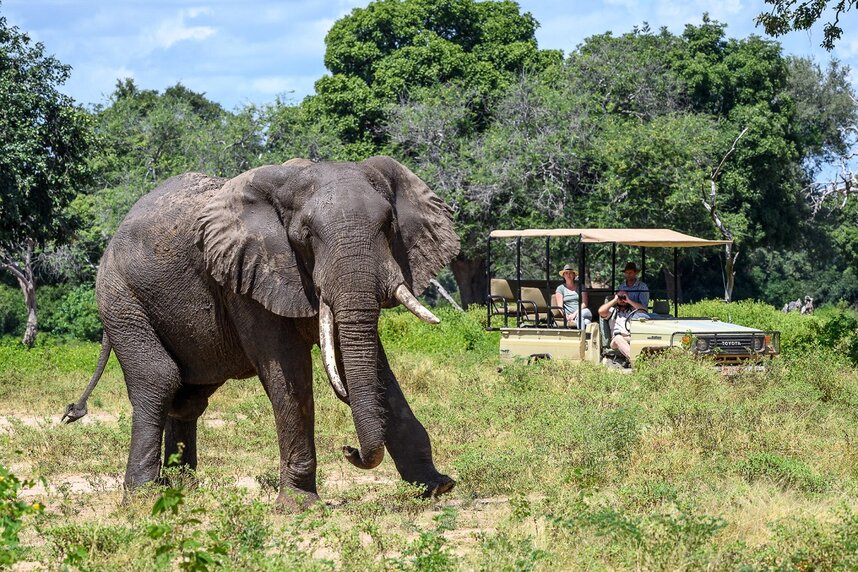 Am mächtigen Zambezi Fluss gelegen befindet sich im Mana Pools Nationalpark das John’s Camp. Hier können Sie im Herzen des Sambesitales die einzigartige Natur bestaunen und vier der fünf "Big Five" in ihrer natürlichen Umgebung erleben. Der zentrale Essbereich, wo Sie ihr Abendessen unter freiem Himmel am Lagerfeuer genießen können, befindet sich in der Mitte des Camps umsäumt von schattenspendenden Bäumen. Darüber hinaus verfügt das Camp über eine erhöhte Aussichtsplattform, auf der Sie tagsüber die Flora und Fauna beobachten, und nachts den Sternenhimmel Simbabwes bewundern können. Sie starten Ihre Safaritage zum Sonnenaufgang und erkunden den Busch zu Fuß oder mit dem Fahrzeug. Alternativ kann am Flussufer geangelt werden. Pro Tag stehen zwei Aktivitäten auf dem Programm. Im Mana Pools Nationalpark sind neben einer Vielzahl von Wildtieren auch über 350 Vogelarten beheimatet.