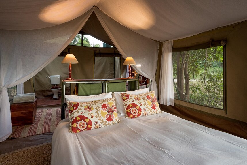 Das John’s Camp bietet fünf Zelte im Merustil mit privater Kübeldusche und WC sowie einer privaten Terrasse. Die einzelnen Zelteinheiten wurden entlang des Zambezis errichtet, um ihren Gästen von jedem Zelt aus eine uneingeschränkte Aussicht zu gewährleisten und ein hohes Maß an Privatsphäre zu bieten. Die Zelte selbst wurden mit natürlichen Materialien ausgestattet, um die umliegende Natur bestmöglich widerzuspiegeln.