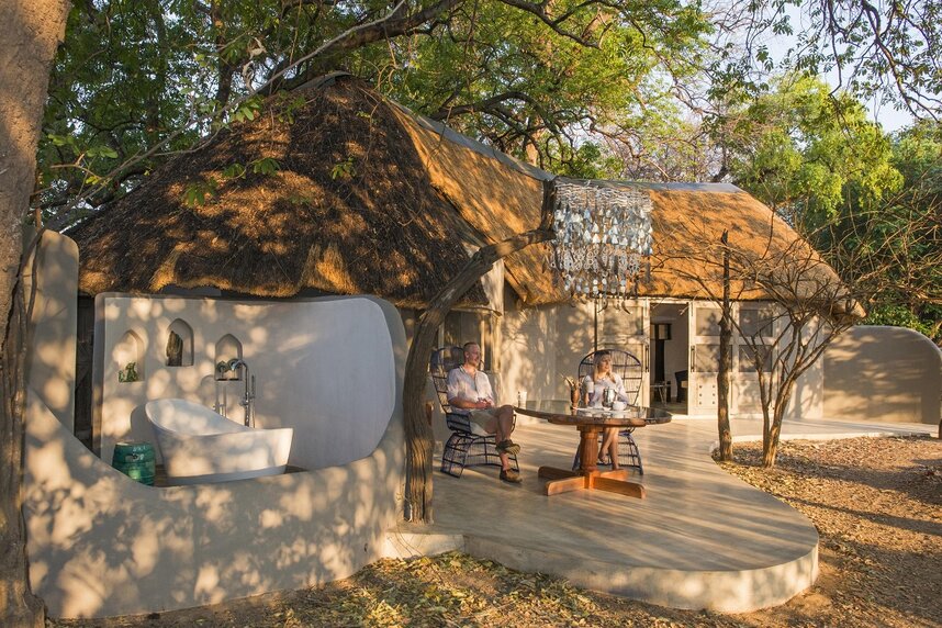 Insgesamt verfügt das Kaingo Camp über sechs Chalets die einzeln entlang des Flussufers aus Stein mit Stroh- und Reetdächern errichtet wurden. Die Einheiten sind unterteilt in fünf Chalets und eine Deluxe Suite für Familien. Die Chalets sind alle im afrikanischen Stil und in Naturfarben eingerichtet und mit einem Kingsize-Bett, einer Innendusche und einer Badewanne im Freien ausgestattet. Zusätzlich bieten sie eine private Veranda mit einem Esstisch für individuelle Mahlzeiten und einem wundervollen Blick auf den Luangwa-Fluss. Die Deluxe Suite liegt am weitesten entfernt von den zentralen Bereichen des Camps und bietet damit seinen Gästen zusätzliche Privatsphäre und ist ideal für Familien oder Paare. Die Suite bietet ihren Gästen einen geräumigen Wohnbereich mit separater Toilette sowie ein Hauptschlafzimmer mit einem angeschlossenen Badezimmer mit einer Innendusche und -toilette und zusätzlich eine Badewanne und Dusche im Freien. Für die Abendstunden verfügt die Suite über ein großes privates Deck am Luangwa-Fluss, wo sie die Stille genießen und den Tag ausklingen lassen können.