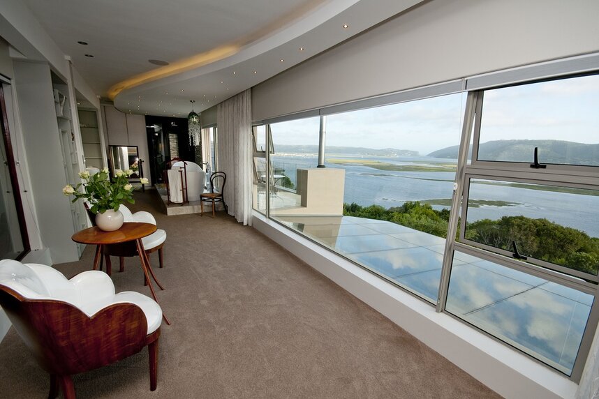 Dieses luxuriöse, privat geführte Gästehaus liegt am Kanonkop Hill mit einem atemberaubenden Blick über die Knysna Lagune. Das zu den 25 besten Luxushotels in Afrika gehörende Haus liegt eingebettet in einem gepflegten Garten mit kleinem Waldstück und bietet einen Ort der Ruhe und Entspannung. Das Stadtzentrum von Knysna ist mit dem Auto in nur wenigen Fahrminuten zu erreichen.