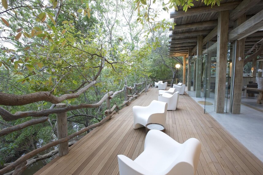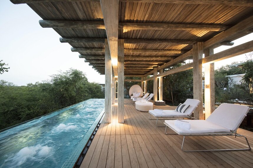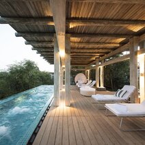 Das 15.000 ha große Kapama Private Game Reserve befindet sich im Greater Kruger National Park. Im Reservat leben die "Big 5" und eine Vielzahl anderer Tiere. Das Karula Camp, der Ort des Friedens, liegt am Ufer des Klaserie-Flusses. Der meist trockene Fluss bildet Tümpel, die kleinere Wild- und viele verschiedene Vogelarten anziehen. Weiß getünchtes Holz und große Glasfronten, ergänzt durch natürliche Farben, verleihen dem Kapama Karula ein modernes Flair. Die offene Lounge und die Bar sind geräumig und dennoch gemütlich. Alternativ können Sie den afrikanischen Sonnenschein auf der Holzterrasse mit Blick auf den Klaserie River genießen. Das Sichten von Leoparden aus dem Speisesaal von Kapama Karula ist keine Seltenheit. Ein romantisches Abendessen am Kamin für zwei Personen kann nach vorheriger Absprache in der Bibliothek genossen werden. Das luxuriöse Spa bietet eine Reihe von Gesundheits- und Schönheitsbehandlungen in vier Behandlungsräumen. Besuchen Sie nach dem Schwitzen im gut ausgestatteten Fitnesscenter das Dampfbad oder entspannen Sie im Pool.