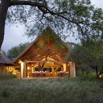Das 15.000 ha große Kapama Private Game Reserve befindet sich im Greater Kruger National Park. Im Reservat leben die "Big 5" und eine Vielzahl anderer Tiere. Genießen Sie den herrlichen Blick auf das natürliche Wasserloch, das den ganzen Tag über von Tieren besucht wird, während Sie Ihren Lieblingscocktail auf der Holzterrasse neben dem einladenden Pool oder in der elegant eingerichteten Lounge genießen. Das Dekor ist modern, zurückhaltend und von der Natur inspiriert. Der Weinkeller präsentiert die feine südafrikanische Sammlung hinter rahmenlosem Glas. Die traditionelle Boma im Freien ist bei schönem Wetter die bevorzugte Kulisse für das Abendessen. Von Feuerlicht und Sternenhimmel beleuchtet, genießen die Gäste eine abwechslungsreiche und geschmackvolle Küche, die von Köchen direkt vor ihnen zubereitet wird.