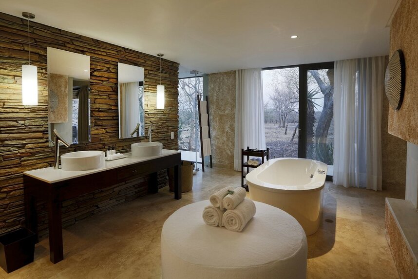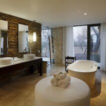 Alle 15 Suiten im Southern Camp verfügen über ein eigenes Bad mit Panoramafenstern, um die umliegende Wildnis zu genießen. Private Terrassen bieten die Möglichkeit, entspannende Sundowner zu genießen und gleichzeitig Tiere zu beobachten.