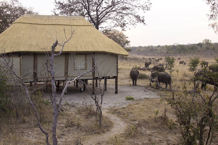 Das Khulu Bush Camp befindet sich auf einer privaten Konzession an der Grenze des Hwange Nationalparks. Hier erleben Sie authentische Pirschfahrten im unberührten Busch. Das gesamte Camp hat Blick auf ein ausgetrocknetes Flussbett. Das Wasserloch in diesem Vlei ist bekannt dafür, dass es eine Vielzahl an Großwild und Vögel anzieht. Der Hauptbereich umfasst eine Bar, einen Speisebereich, eine Boma und einen Pool.