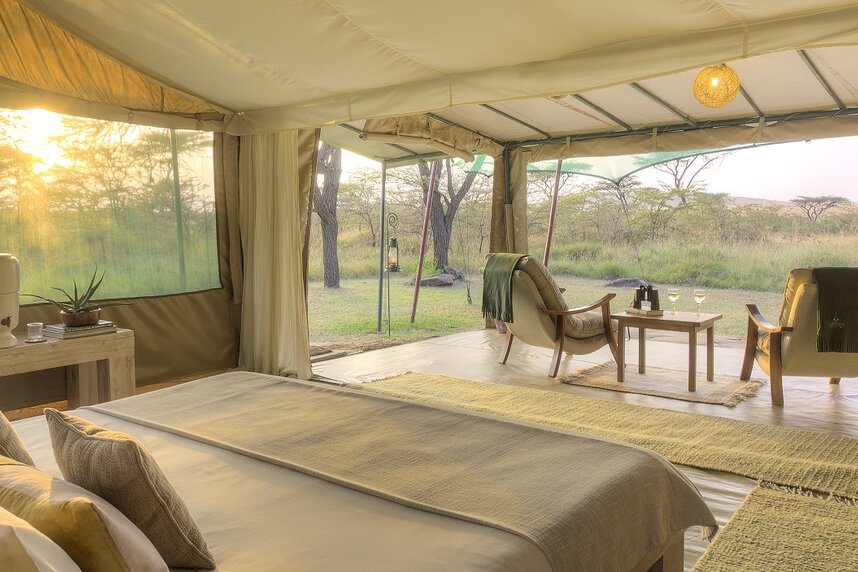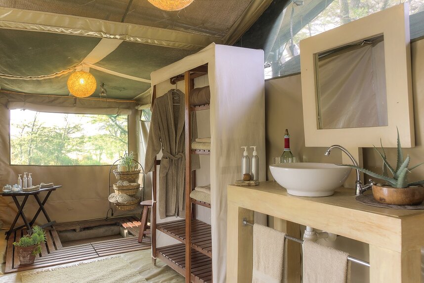 Die sechs stilvoll eingerichteten Safarizelte sind von Akazien umgeben und mit einem Solarbeleuchtungssystem ausgestattet. Zudem garantieren sie höchste Privatsphäre und bieten Ihnen ein eigenes Badezimmer sowie eine private Veranda auf der Sie die Natur und die Tiere Kenias bestaunen können.