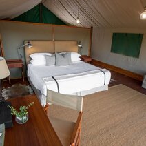 Die gut ausgestatteten Zelte bieten die ideale Balance zwischen Komfort und Abenteuer und bieten einen idealen Rahmen, um die Wildnis von Kwandwe zu erkunden. Jedes Zelt verfügt über eine schattige Veranda im Freien, auf der Sie nachmittags den Blick in die Wildnis genießen können. Zur Ausstattung gehören Solarduschen im Außen- und Innenbereich.