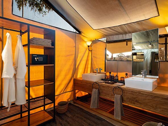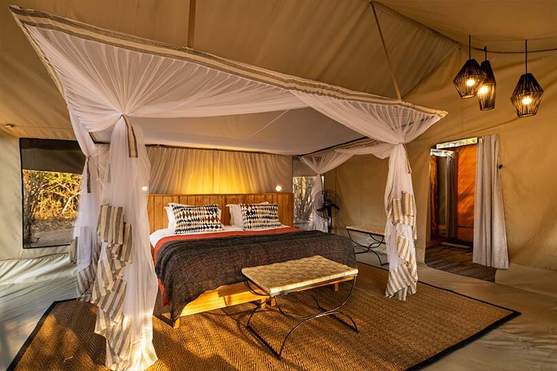 Unweit vom Mwagusi Flussbett liegt das Kwihala Camp mit nur sechs Zelten, die viel Privatsphäre und ein echtes Buscherlebnis bieten. Die Zelte (40 m²) haben ein en-suite Badezimmer mit Eimerduschen und Spültoiletten. Alle Zelte bieten zudem eine kleine private Veranda mit einer Sitzgelegenheit, damit Sie den spektakulären Ausblick auf den Mwagusi-Sandfluss entspannt genießen können.