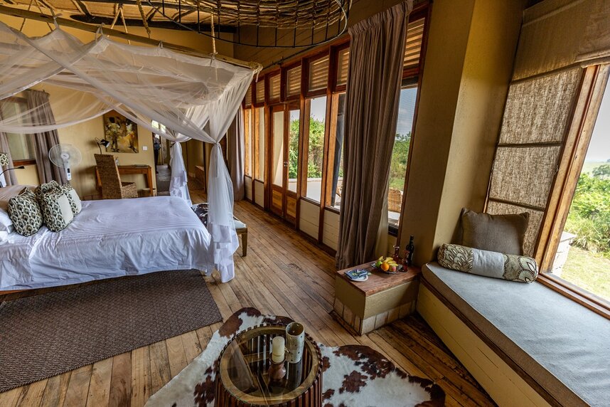 Acht sehr geräumige Bungalows mit typisch afrikanischen Elementen sind mit höchstem Komfort ausgestattet und verfügen über ein en-suite Badezimmer. Sie sind alle eingebettet in eine Hügellandschaft und bieten unterschiedliche Ausblicke über die Schlucht, die Savannen oder auf die schneebedeckten Gipfel der Rwenzori Berge.