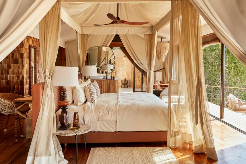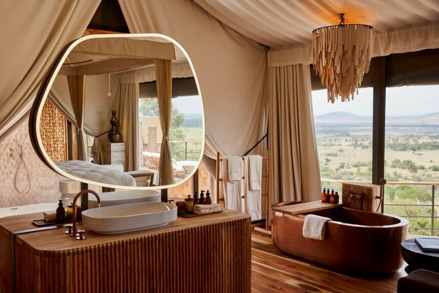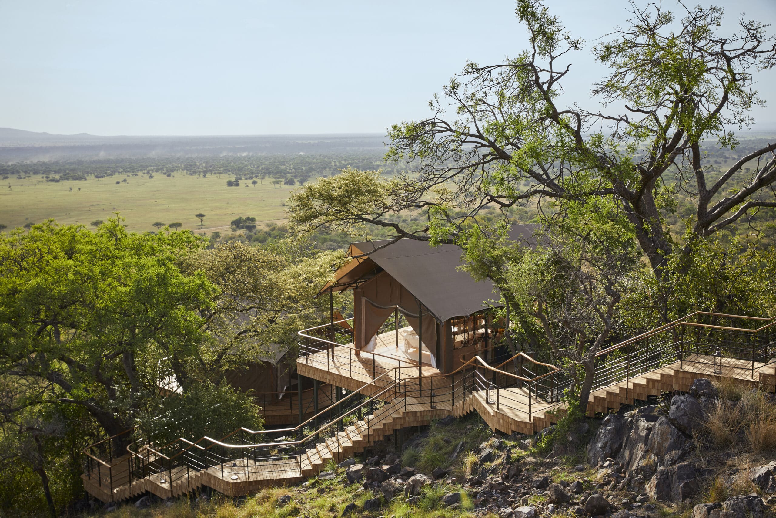 Die Laba Grumeti Art Lodge verfügt über 12 großzügige, individuell gestaltete Suiten, die erhöht gebaut sind und weite Ausblicke in die Landschaft bieten.