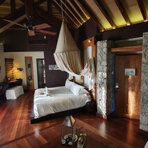 La Digue ist ein idyllischer Ort, an dem die Zeit stehengeblieben zu sein scheint – zweifellos eine der schönsten Seychelleninseln. Mehrmals täglich bringt Sie eine Fähre ab Praslin in 15-20 Minuten auf die Insel. Das Resort liegt harmonisch eingebettet zwischen dem Ozean und einer Hügellandschaft. Einsame Strände und traumhafte Buchten sind leicht zu Fuß, mit dem Ochsenkarren oder per Rad erreichbar. Für kulinarische Höhepunkte sorgen zwei Restaurants sowie zwei Bars. "Le Combava" auf der Dach terrasse serviert feinste Speisen, im "Santosha" wird mit herrlichem Blick über den Indischen Ozean internatio nale und kreolische Küche gereicht. Hoch oben zwischen massiven Granit felsen thront das "Eden Rock Spa". Eine grandiose Aussicht bietet auch der Infinity Pool. Im gesamten Resort steht Ihnen gratis WLAN zur Verfügung.