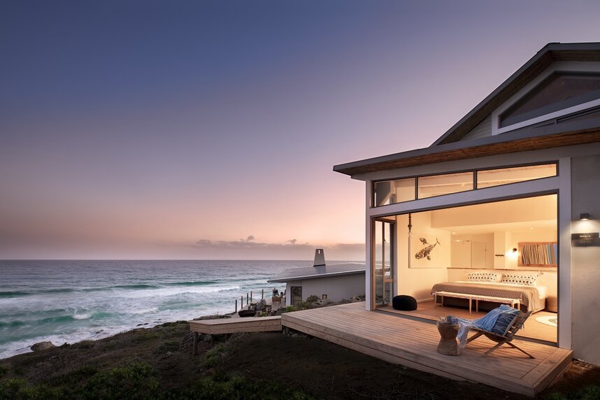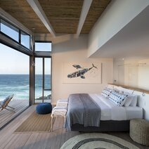 Die aus natürlichen Materialien erbaute Lodge fügt sich gut in die Landschaft ein. Sie bietet nur sieben komfortabel eingerichtete Zimmer, darunter 1 Familienzimmer, direkt an einem 6 km langen Privatstrand mit atemberaubenden Felsenpools. Jedes Zimmer verfügt über ein separates Bad mit Dusche, raumhohe Glasfenster mit Blick auf den Indischen Ozean, einen Holzofen für die kalten Wintermonate und eine kleine Veranda.