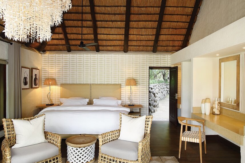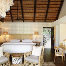10 idyllische Superior Chalets reihen sich im Schatten uralter Matumi-Bäume an das Ufer des Sand-Flusses. 3 der Chalets sind mit einem zusätzlichen Kinderzimmer ausgestattet und somit ideal für eine Familien-Safari. Die Zimmer sind in sanften Erdtönen, kombiniert mit Mahagoni-Holz und fließenden, gemusterten Stoffen, gestaltet.