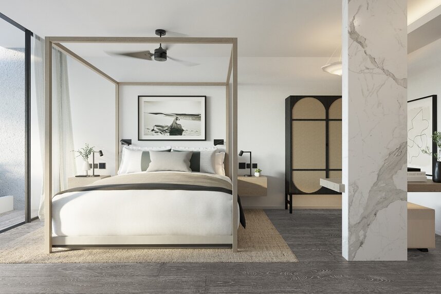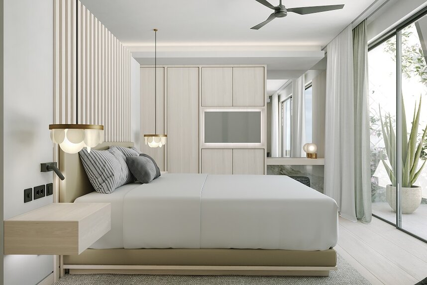 Neben den 86 stylischen Juniorsuiten (65m²), davon 26 mit einem atemberaubenden Panoramablick auf die Lagune und 10 Familiensuiten (130m²), bietet das Hotel auch Villen und Residences für 6-8 Personen, mit eigenem Pool und mind. 2 Schlafzimmern. Die 20 Pool Residences (180m²) liegen hinter dem Hauptgebäude und haben 2 en-suite Schlafzimmer. Die 7 Pool Villen (240m²) liegen näher am Strand und bestehen aus zwei Stockwerken. Ein eigener Butler, ein individuell beheizbarer Pool und eine große Veranda inmitten eines tropisch angelegten Gartens machen Ihren Aufenthalt unvergesslich. In allen Zimmern trifft wunderschönes Design auf Hightech mit Smart-Home-Steuerungsfunktionen wie automatische Fensterläden und Vorhänge.