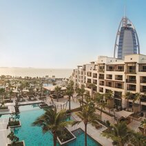 Madinat Jumeirah - mehr Institution und Ikone, als einfach nur ein Luxushotel in der Megacity Dubai. Dieses Flaggschiff der Edelmarke Jumeirah verbindet vier verschiedene Hotelkonzepte zu einer einzigen absolut atemberaubenden Hotelanlage am schönsten Strandabschnitt der Metropole. Ob Mina A’Salam, Al Qasr, Dar Al Masyaf oder das brandneue Al Naseem - jeder Teil dieser "Stadt in der Stadt" überzeugt auf seine eigene Art und Weise. Durchzogen wird Madinat Jumeirah von idyllischen Wasserwegen und verträumten Gärten, die dieser Nobeladresse eine ganz besonderen Atmosphäre verleihen, die nicht nur in Dubai ihresgleichen sucht. Selbstverständlich bleiben auch kulinarisch in über 60 Bars und Restaurants keinerlei Wünsche offen. Hier, im Madinat Jumeirah, lebt der ewige Zauber des Orients fort.