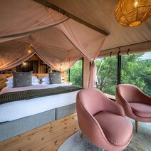 Das luxuriöse Magashi Camp befindet sich auf der vielfältigen nordöstlichen Seite des Akagera Nationalparks mit Blick auf den wunderschönen Rwanyakazinga See. Die sechs Zelte des Magashi Camps sind mit einem eigenen Bad, einem Tee-/Kaffezubereiter, einer Minibar und vielfältigen Pflegeprodukten und Kosmetikartikeln ausgestattet.