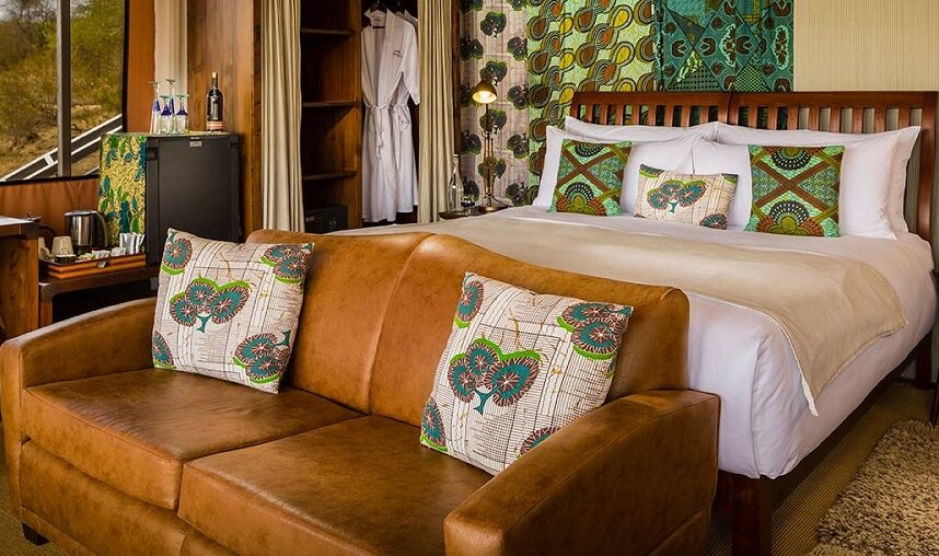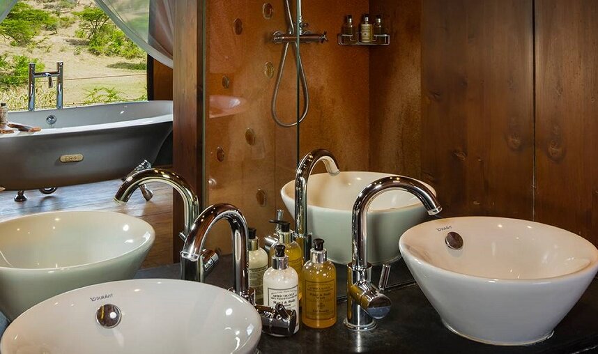 Die 12 großzügigen Zelt-Suiten (ca. 70 m²) sind mit viel Liebe zum Detail eingerichtet und versprühen modernes Afrika-Feeling. Alle Zelte verfügen über ein en-suite-Badezimmer mit Badewanne, eine Minibar, und eine private Terrasse, von der Sie den Blick in die Weite der Savanne genießen können.