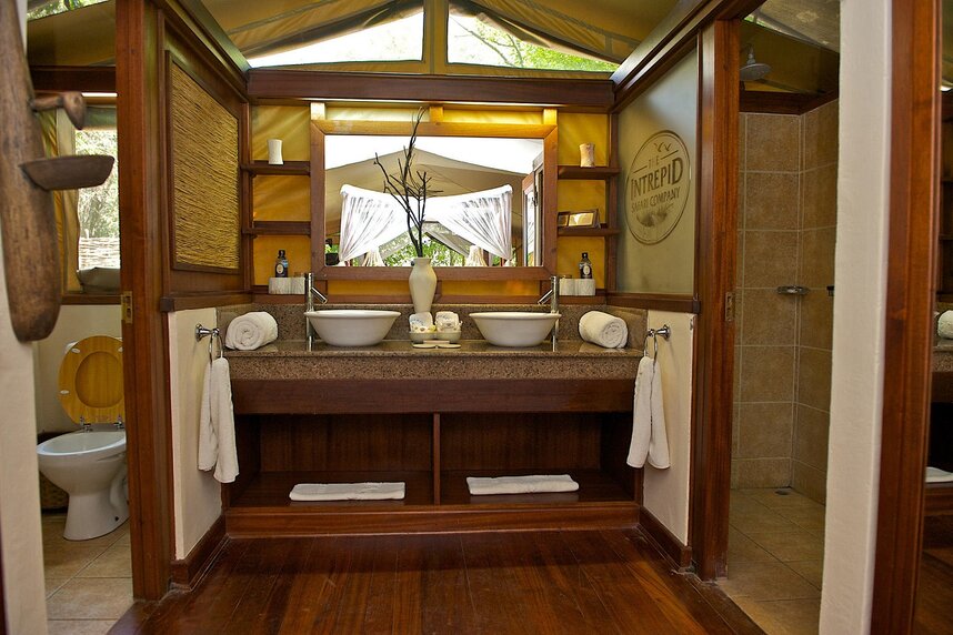 Die 30 elegant eingerichteten Zelte wurden über ein großes Gelände am Flussufer verteilt auf Plattformen errichtet und verfügen über eine komfortable Ausstattung mit Bad mit Doppelwaschbecken, Regenduschen, WC, Kaffee- und Teezubehör, WLAN und einer Veranda.