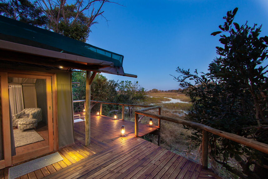Anreise per Sportflugzeug von Maun in ca. 20 Minuten, von Kasane in 2 Stunden zum Santawani Airstrip, von hier ca. 45 Minuten Fahrzeugtransfer zum Camp.