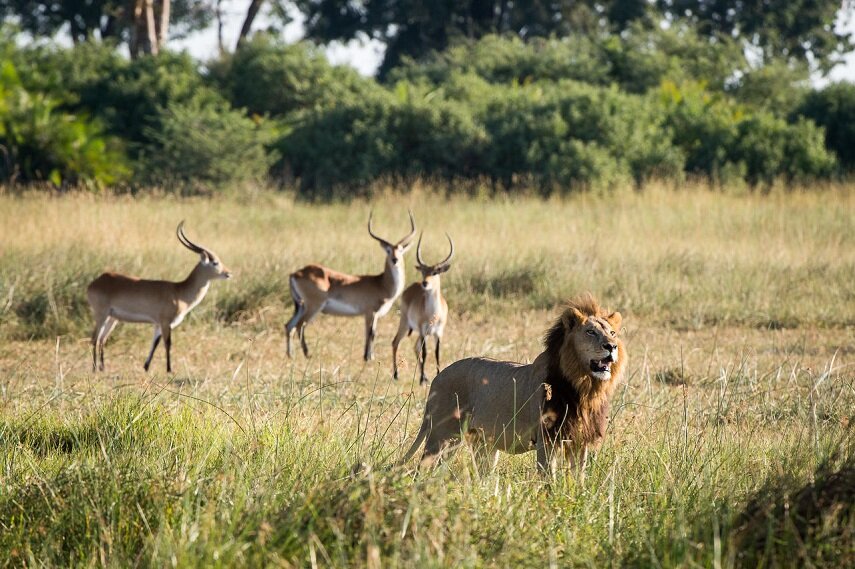 Mombo ist unbestritten eines der besten und erlebnisreichsten Camps im Okavango Delta. Es liegt an der Nordspitze von Chief‘s Island, einem Safarigebiet mit extrem hoher Wildkonzentration, insbesondere mit sehr guten Möglichkeiten, Leoparden und Geparden zu beobachten. Mombo wurde 2018 nach umfassender Renovierung in Einklang mit der umgebenden Natur wieder eröffnet und bietet Luxus pur. Auf den Pirschfahrten, die hier ausschließlich im Geländewagen durchgeführt werden, können Sie außerdem Löwen, Büffel und seit kurzem auch wieder Nashörner entdecken. Zum reetgedeckten Haupt- und Speisebereich gehören eine Boma, eine kleine Bibliothek sowie ein Pool.