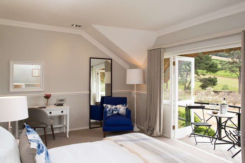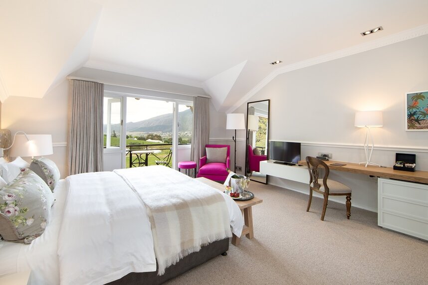 Das luxuriöse Boutique Hotel liegt etwas außerhalb von Franschhoek, ca. 45 Fahrminuten von Kapstadt entfernt, und bietet eine faszinierende Mischung aus kolonialem Charme und modernem Design, sowie traumhafte Ausblicke auf das Franschhoek-Tal. Die Weingebiete um Stellenbosch, Paarl und Somerset West sind in nur 30 Fahrminuten erreichbar. Das Anwesen liegt auf einem 39 Hektar großen Gebiet, das seine eigenen Weinberge mit einschließt. Sir Richard Branson ließ das Weingut als Teil der "Virgin Limited Edition" in neuem Glanz erstrahlen.