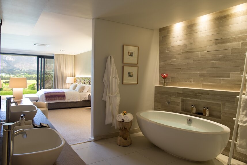 Genießen Sie erlesene Gutsweine, entspannen Sie am Pool oder auf der Terrasse und lassen Sie sich von der feinen Küche verwöhnen. Das "Miko” Restaurant verwöhnt Sie mit Fine-Dining-Mahlzeiten, während die "Country Kitchen” neben dem Weinkeller für ihre exquisite Landhauskost bekannt ist. Zu den weiteren Annehmlichkeiten zählen ein Spa und ein Fitnessstudio. Mont Rochelle verfügt über 26 stilvolle, klimatisierte Zimmer und Suiten mit Blick auf das Tal oder den Innehof, die teilweise über eine private Terrasse oder einen Balkon verfügen. Die Suiten bieten eine separate Lounge und teilweise eine private Terrasse mit Erfrischungspool. Für Familien gibt es Zimmer mit Spielen, DVD-Player und Spielekonsole.