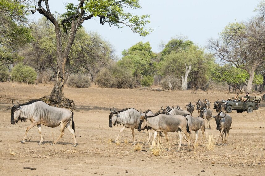 Das exklusive Mwamba Bush Camp ist ein kleines, persönliches Camp und befindet sich am Ufer des Mwamba-Flusses, der im Laufe der Saison austrocknet. Den Mittelpunkt des Camps bildet die open-Air Bar und der Essplatz mit einigen Sesseln und einem Tisch, an dem sich die Gäste zum Essen zusammenfinden können und durch das Blätterdach des Ebenholzbaumes vor der Sonne geschützt sind. Die Unterkunft ist umgeben von vielen offenen Flächen, wo Sie mit hoher Wahrscheinlichkeit die dort lebenden Leoparden und Löwen sichten können. Oder aber Sie verstecken sich in dem campeigenen Hide um die Tierwelt bestaunen und fotografieren zu können. Besonders von September bis Oktober haben Sie die Chance große Kolonien von Bee-Eaters an den Ufern des Mwamba-Flusses zu sehen. Wer die Wildnis Sambias bei Nacht erleben will sollte sich das Sleepout nicht entgehen lassen. Wasseraktivitäten sind immer abhängig vom Wasserstand und können nicht garantiert werden.