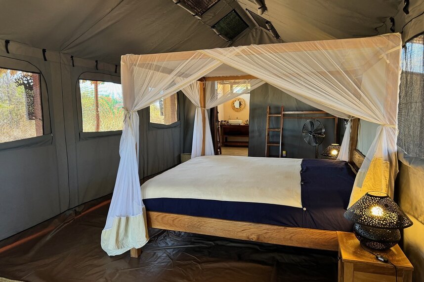 Nur 9 Zelte bieten die perfekte Mischung aus Natur und Komfort und verbinden den Charme des Campings mit dem Luxus eines modernen Hotels. Jedes Zelt verfügt über ein Badezimmer aus Stein mit Doppelwaschbecken, solarbeheizte Duschen, Toiletten mit Wasserspülung und eine Außendusche, um die atemberaubende Aussicht zu genießen.