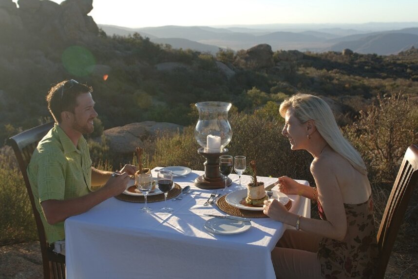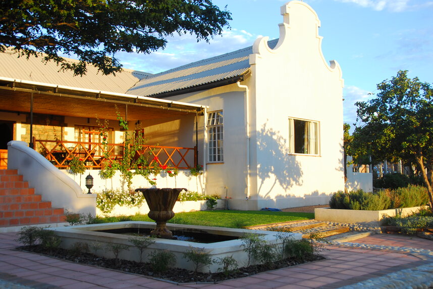 Besonders empfehlenswert ist die Übernachtung in einer der drei kuppelförmigen Mountain Suiten. Diese sind traditionell in die runden Felsen des Ausläufers des Spektakelbergs gebaut und bieten eine prächtige Sicht auf das Namakwaland. Im Manor House befinden sich fünf klassische Gästezimmer. Der schön gestaltete Garten mit Pool lädt zum Verweilen ein. Zudem gibt es zwei Cottages auf Selbstversorgungsbasis mit jeweils zwei Schlafzimmer.