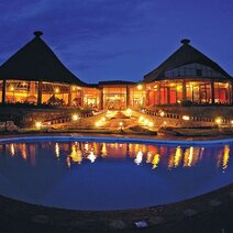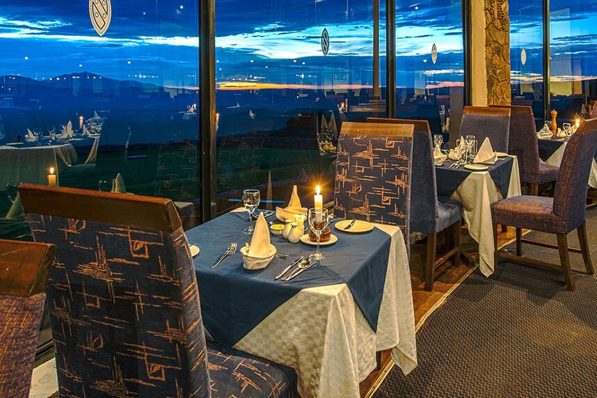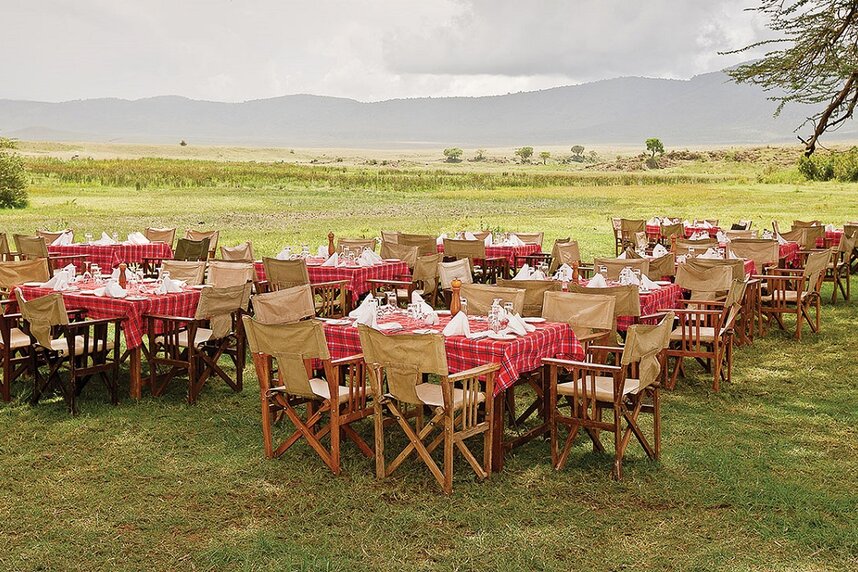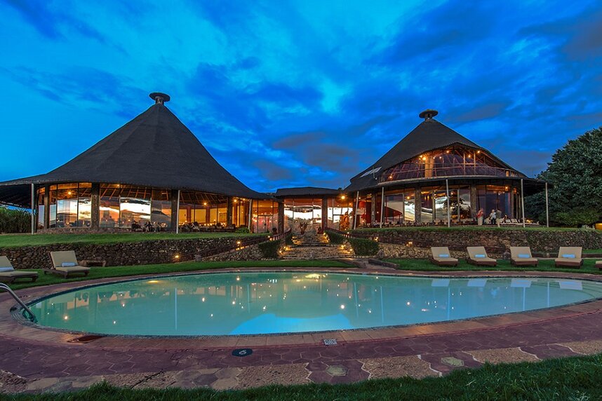 Die beliebte Lodge steht auf dem höchsten Punkt des Kraterrandes und bietet als einzige einen traumhaften Blick auf den Krater bei Sonnenuntergang. Das Haupthaus ist von typisch afrikanischer Rundbauweise inspiriert und mit lokalen Designelementen geschmückt. Das Restaurant ist für bis über 200 Gäste ausgelegt, man speist an kleinen Tischen rund um eine offene Feuerstelle. Die hohen Decken vermitteln ein weitläufiges Ambiente, die Einrichtung besteht aus bequemen Polstermöbeln, Tischen aus dunklem Holz und einer Bar. Vor dem Hauptgebäude erstreckt sich ein Swimmingpool mit ungehinderter Aussicht auf den Krater.