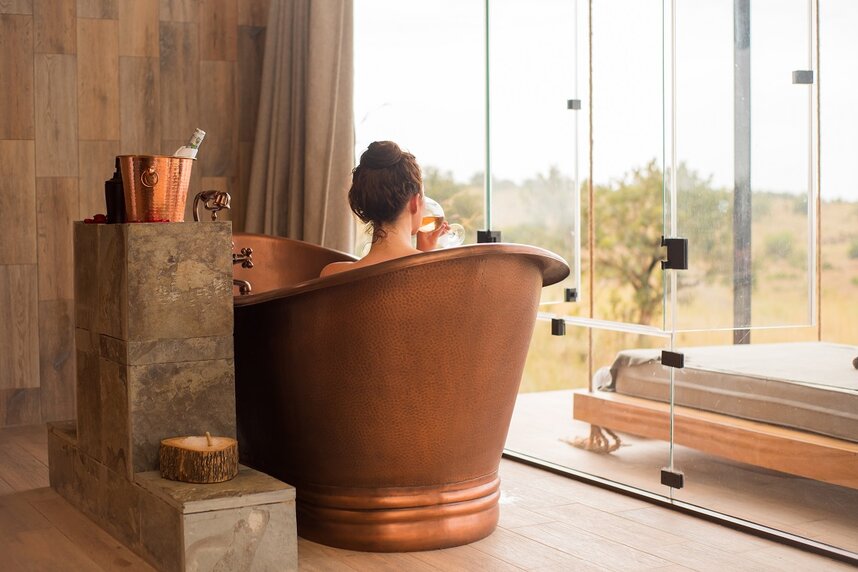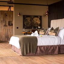 Die 10 luxuriösen und hellen Zelt-Suiten stehen auf hölzernen Plattformen und haben alle eine große Veranda und Feuerstelle. 2 Family Suiten sind mit privatem Plunge Pool ausgestattet. Das en-suite Badezimmer wartet mit Badewanne und 2 Indoor-Duschen auf.