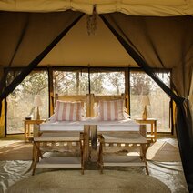 Die sechs geräumigen Safari-Zelte sind im typischen Meru-Stil ausgestattet und verfügen über eine großzügige Veranda und ein en-suite Badezimmer mit einer Eimerdusche im Freien. Durch die hervorragende Lage zwischen dem dichten Busch und entlang des trockenen Ifuguru-Flussbettes wird ein hohes Maß an Privatsphäre geboten. Das Familienzelt besteht aus zwei Schlafzimmern und einem angrenzenden Wohnbereich. Die Mahlzeiten werden im Gemeinschaftsbereich oder im Busch und im Flussbett unter den Sternen serviert.