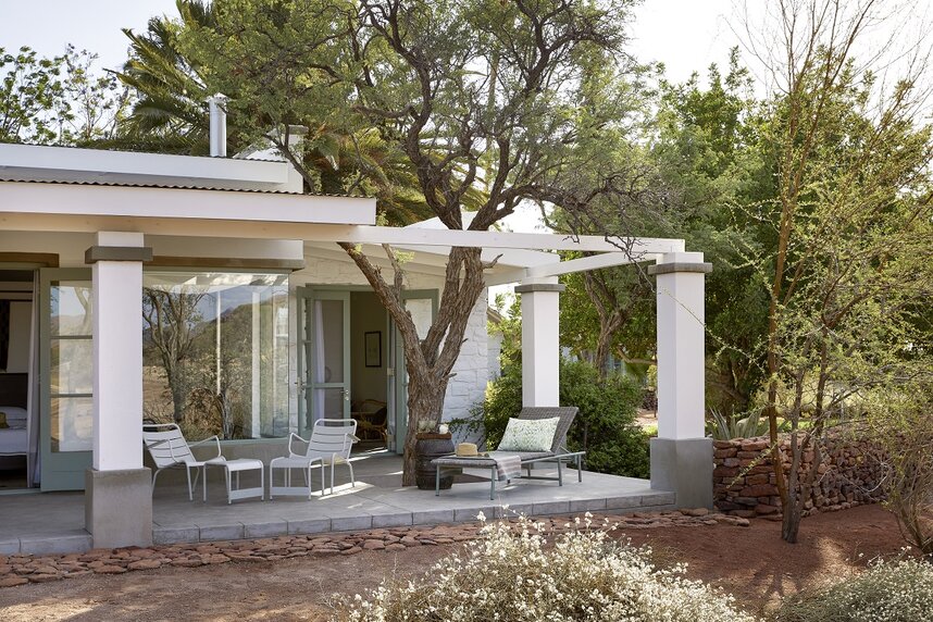 Der Nooishof bietet vier liebevoll gestaltete Luxussuiten, jede einzelne bietet eine Mischung aus modernem Komfort und rustikalem Charme, wie z.B. einem Holzofen. Auf Ihrer privaten Veranda können Sie die endlose Stille der umgebenden Wüste genießen.
