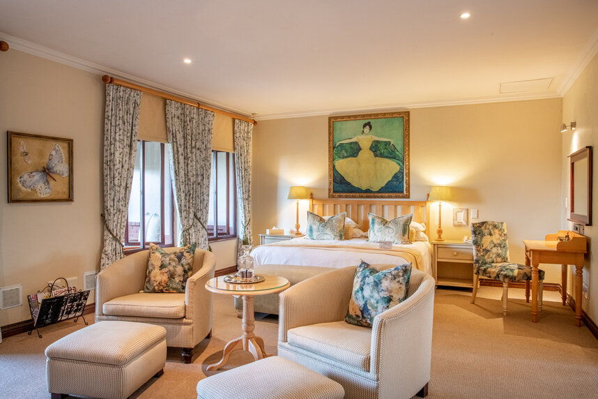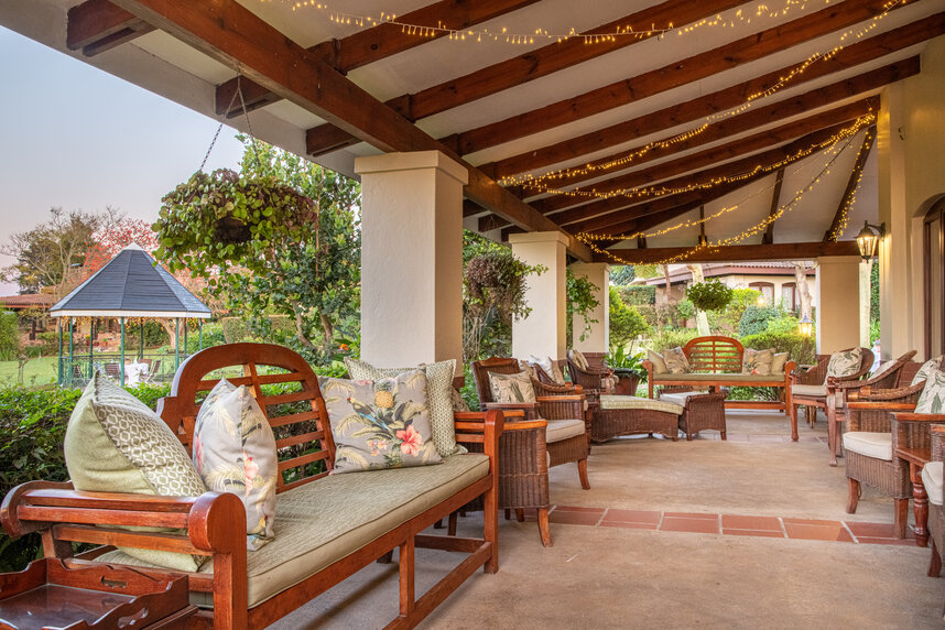 Ein wunderschöner Garten mit Swimmingpool lädt zum Entspannen ein. Das Restaurant bietet leckere, saisonale Gerichte mit korrespondierenden, südafrikanischen Weinen. Bei schönem Wetter wird das Frühstück auf der Veranda serviert.