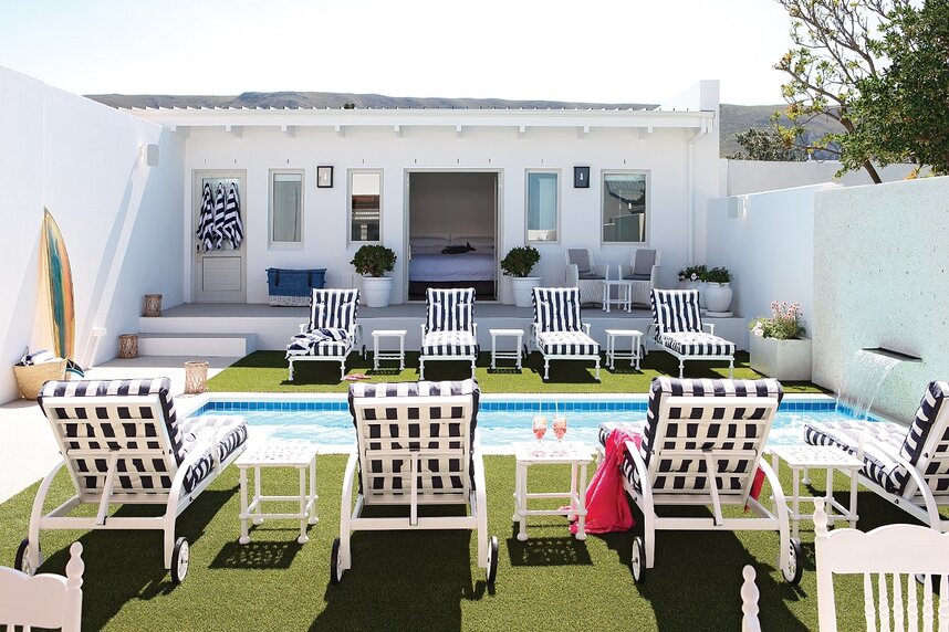 Die fünf geräumigen und hell gestalteten Zimmer mit eigenem Balkon haben alle einen herrlichen Meerblick auf die Walker Bay und die umliegende Küste. Genießen Sie die Sonne auf einer bequemen Liege neben dem beheizten Swimmingpool im ruhigen Garten im Innenhof.