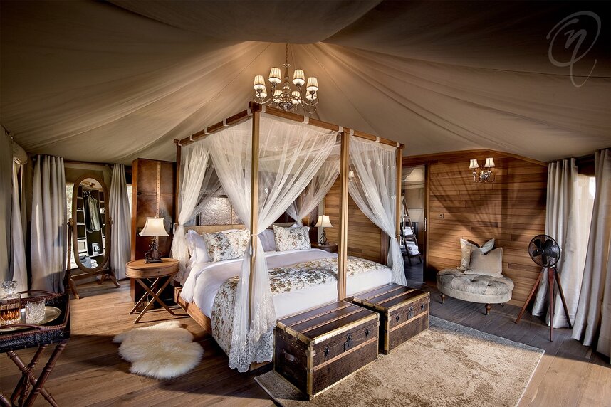 Das Camp verfügt über 12 großzügige, luxuriös eingerichtete Zelte und ein Familienzelt. Die Zimmer verfügen über ein romantisches Himmelbett mit Blick in die Weite der Serengeti, einen kleinen Lounge-Bereich mit einem Holzofen und edlen Ledersesseln, eine Innen- und Außendusche sowie eine freistehende Badewanne. Die private Veranda bietet den perfekten Platz, um den Tag in Ruhe ausklingen zu lassen. Das Familienzelt verfügt über 2 Schlafzimmer mit jeweils eigenem Badezimmer und einen gemeinsamen Loungebereich.