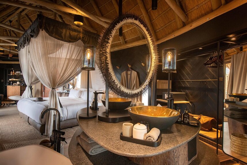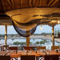 Das Camp zeichnet sich durch seine exklusive Ausstattung aus, die höchsten Komfort und Service verspricht. Der zentrale Turm im Hauptbereich ist einem Termitenhügel nachempfunden. Kulinarische Genüsse erwarten die Gäste im hauseigenen Restaurant, während die Bar einen perfekten Ort für entspannte Abende unter dem afrikanischen Sternenhimmel bietet. Die Mahlzeiten werden auf Wunsch auch in Ihrer Suite serviert.