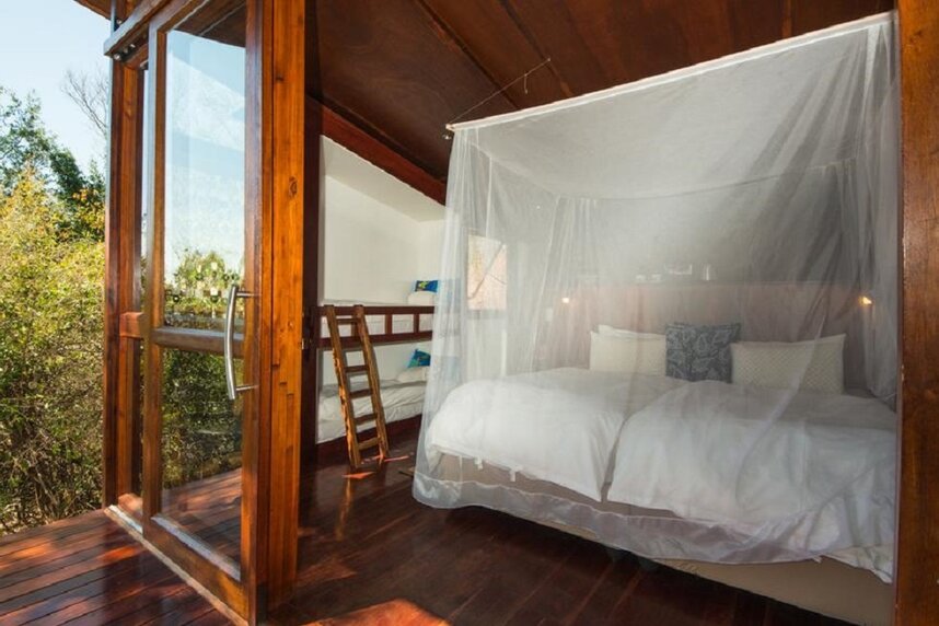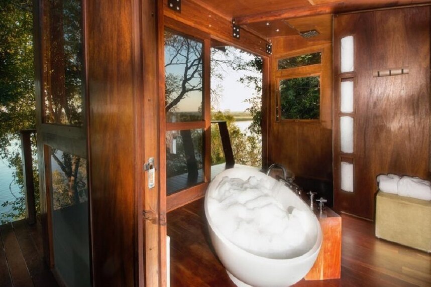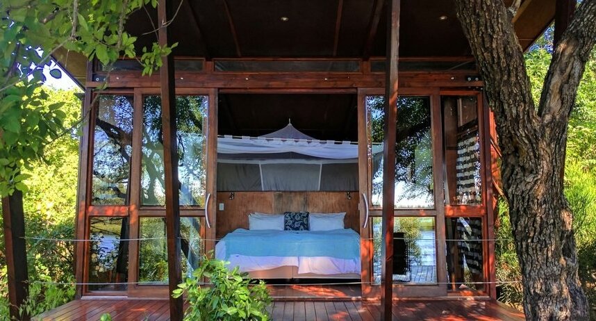 Die River Dance Lodge bietet 5 außergewöhnliche, mit viel Liebe zum Detail eingerichtete Waterfront Bungalows mit extralangen Betten. Die unter Bäumen gelegenen Bungalows wurden hauptsächlich aus Holz und Glas errichtet. So erwachen Sie schon am Morgen mit einem traumhaften Ausblick in die Natur und die Geräusche des Buschs wiegen Sie am Abend in den Schlaf.