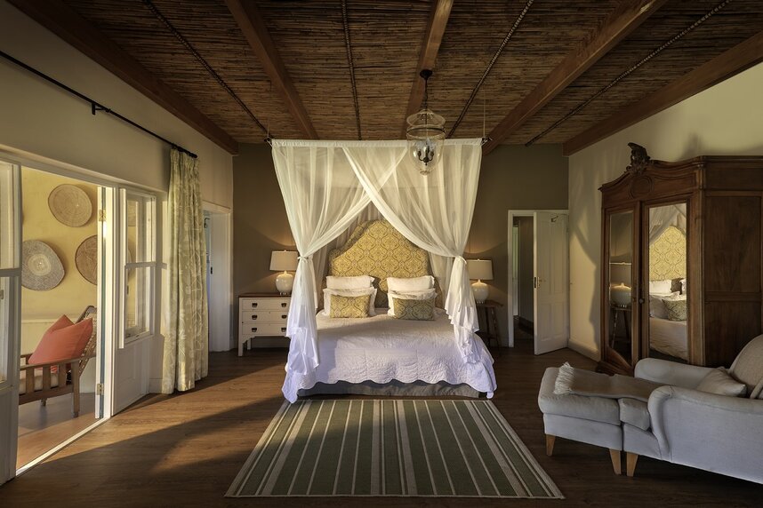 Die beiden Homestead Luxury mit Bergblick und die zwei etwas kleineren Homestead Classic mit Blick in den Garten befinden sich im Haupthaus der Karoo Lodge. Sie sind geräumig, hell und luftig, mit Klimaanlage und eigenem Bad mit großer freistehender Badewanne und Dusche. Diese Suiten öffnen sich zur weitläufigen Veranda mit Sitzgelegenheiten im Freien, die für traditionelle Karoo-Bauernhäuser stehen. In diesen Suiten kann ein Zustellbett für ein Kind untergebracht werden.