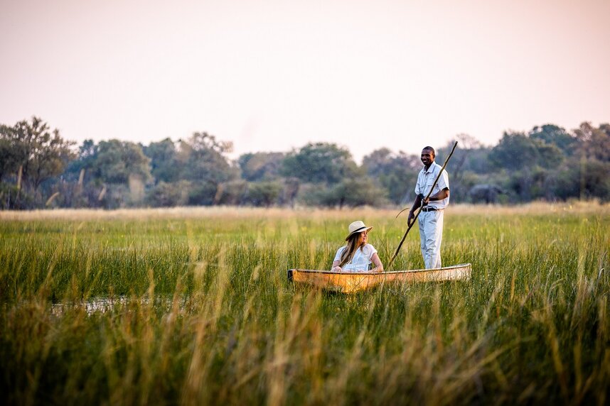 Dieses beliebte Camp gehört zu den besten Adressen des Okavango Deltas. Es liegt in der legendären Mombo-Konzession auf Chief’s Island, einer sehr wildreichen Region. Der typische Safari-Stil unterstreicht die authentische Atmosphäre des Camps. Sie können vom großzügigen Außenbereich und ihren eigenen Suiten jederzeit wilde Tiere beobachten. Zum Hauptbereich gehören ein Restaurant, ein Aussichtsdeck mit Pizza-Ofen, eine Bar, eine Bibliothek sowie ein Fitnessstudio und ein Kids Club. Kinder sind ab 6 Jahren willkommen.