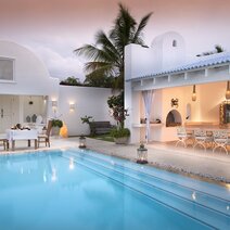 Etwas erhöht, auf den Klippen der Kingfisher Bay liegt das luxuriöse Boutique Hotel inmitten üppiger Gartenlandschaft. Es ist mit Liebe zum Detail konzipiert und einem kleinen griechischen Dorf nachempfunden. Hier haben Sie einen malerischen Küstenstreifen ganz für sich, mit exklusivem Ausblick auf den azurblauen Ozean. Im Rahmen der Vollpension bietet das Küchenteam kulinarische Highlights und viel Abwechslung beim Abendessen im Innenhof, am Pool oder auf der Dachterrasse.