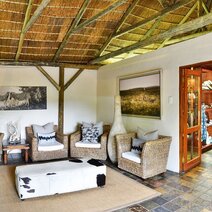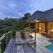 Die luxuriöse "Bayethe Tented Lodge" im Stil eines Safaricamps liegt eingebettet in dichter Vegetation und lässt Ihren Traum einer luxuriösen Safari an der Garden Route wahr werden. Die Lodge besteht aus Steinwänden mit einem reetgedeckten Dach und bietet einen malerischen Blick auf die unberührte Natur. Hier können Sie direkt vom Aussichtsdeck aus Antilopen beim Trinken am Flussufer beobachten und bei Sonnenuntergang mit einem Cocktail anstoßen. Zweimal täglich finden Pirschfahrten im offenen Geländewagen statt. Kommen Sie den "Big Five" auch auf Fußpirschen näher und unternehmen Sie historische Touren.