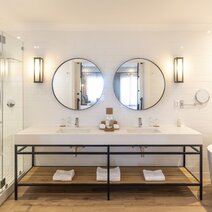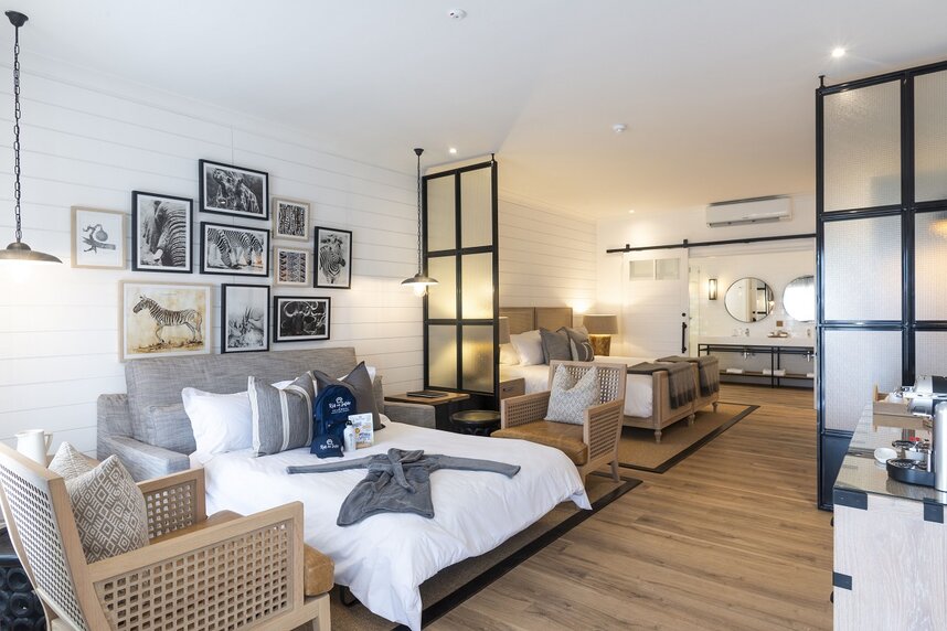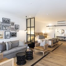 Die 9 luxuriösen Suiten (44 m²) haben alle Balkon oder Terrasse, sind auf Familien ausgerichtet und bieten jeweils ausreichend Platz für zwei Erwachsene und ein Kind. Sie sind modern und in hellen Farben eingerichtet und bieten alle Annehmlichkeiten.